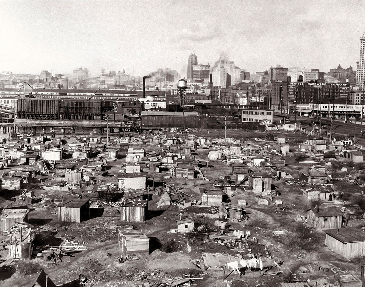I början av 1930-talet var läget mycket mörkt. Barn gick hungriga till sömns. Hela familjer kurade ihop sig kring enkla kaminer för att hålla värmen. Andra ställdes bokstavligen på gatan – med sina möbler och andra ägodelar – när de inte kunde betala hyran. En särskild sorts kåkstäder växte upp, kallade Hoovervilles – efter den sittande presidenten.