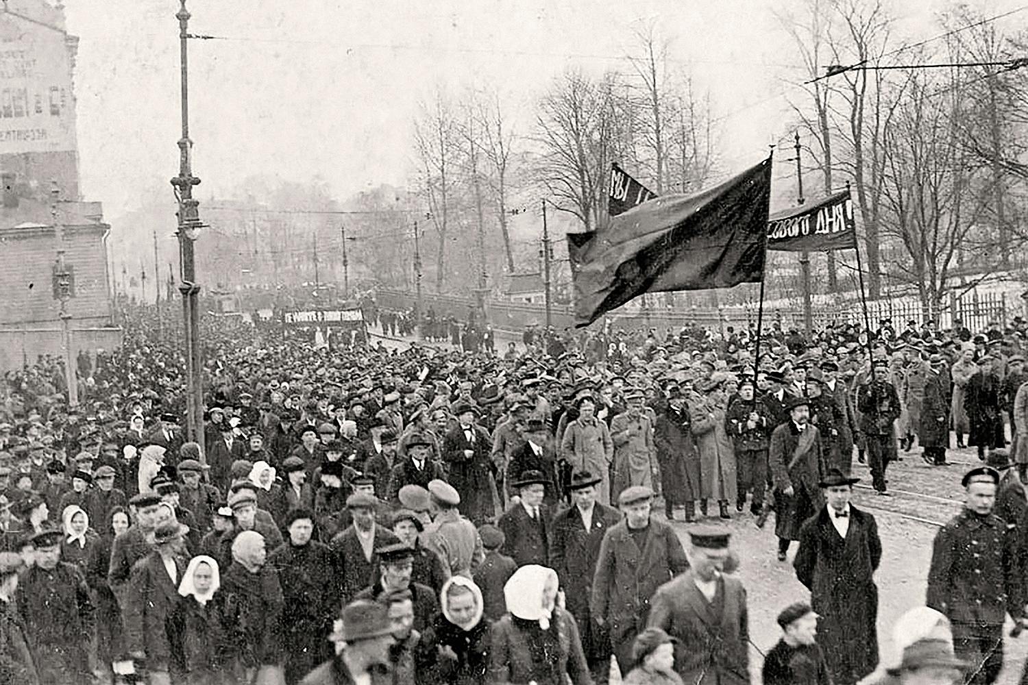 Demonstrationståg för åtta timmars arbetsdag, Helsingfors 1917.