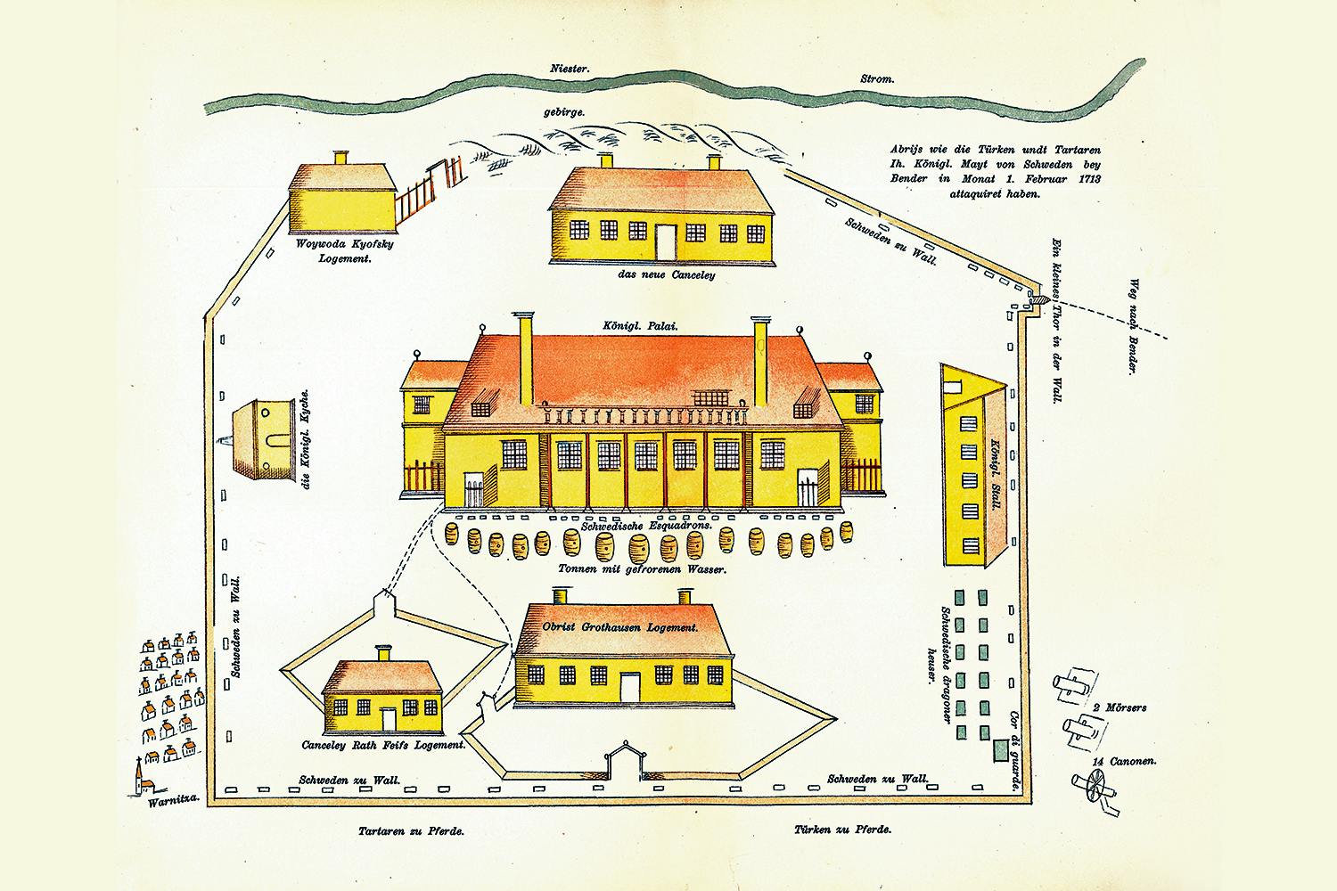 Kort därefter hördes ytterligare en explosionskrevad. Och så en till. Samtidigt ljöd turkiska stridsrop utanför. Då kom kungens order: alle man skulle inta sina försvarsposteringar.
