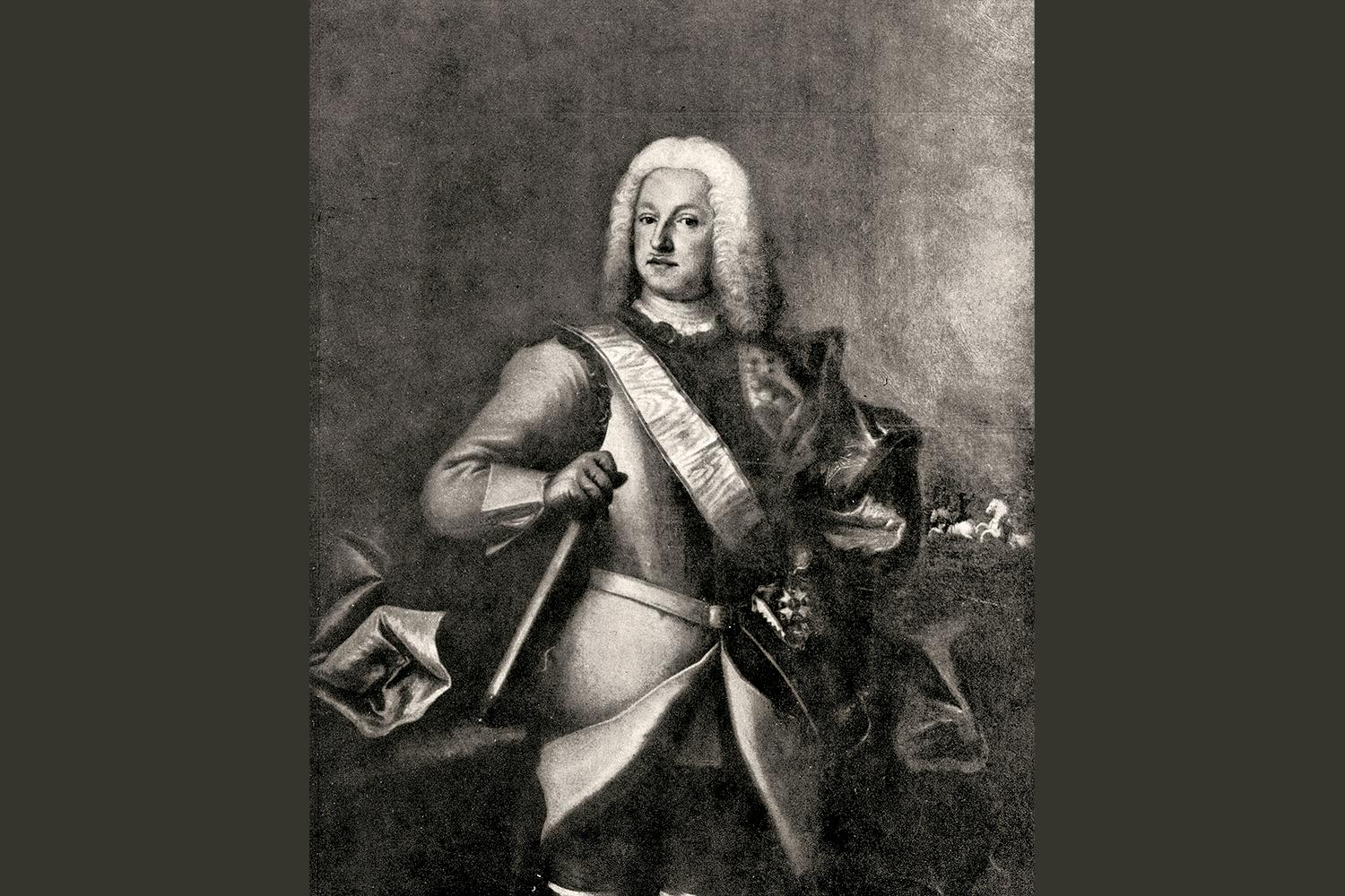 Därefter hjälptes kungen upp på en rikt utsmyckad häst. Han var tvungen att få hjälp med att stiga upp eftersom han fått en fraktur på vänster vadben när han snubblade på sina sporrar. Sin stoiska läggning trogen nämnde han emellertid inget om skadan.