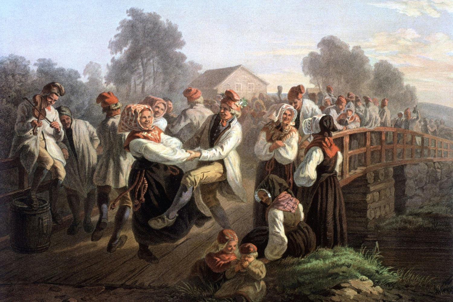 Ett exempel på hur mer folkliga danser letat sig in i högreståndsmiljö kommer från en tillställning i Stockholm 1843. Hovmarskalk Erik af Edholm berättar: