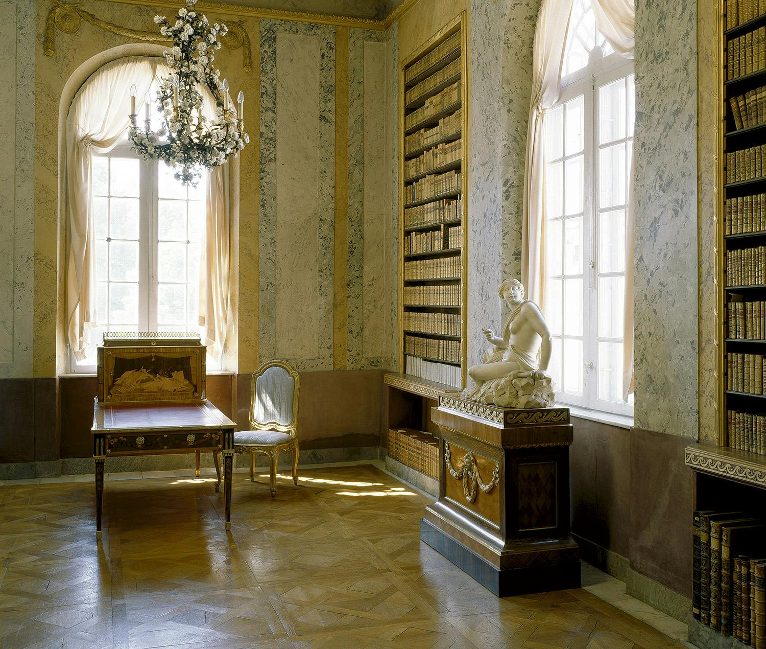 Skrivbordet som Georg Haupt gjorde åt drottning Lovisa Ulrika 1770 var hans så kallade mästerstycke. Här på ursprungsplatsen i Marmorkabinettet på Drottningholms slott.