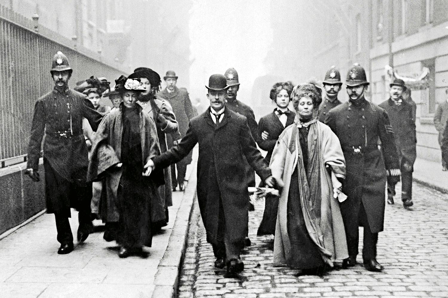 Kaos bröt ut. Suffragetter brände ner en paviljong i Kew Garden – den första av fler än fyrtio mordbränder under åren 1913–14. En aktivist kastade en yxa mot premiärminister Asquith då han åkte i öppen bil till ett möte. Vid ett annat tillfälle angrep en kvinna honom med en hästpiska.