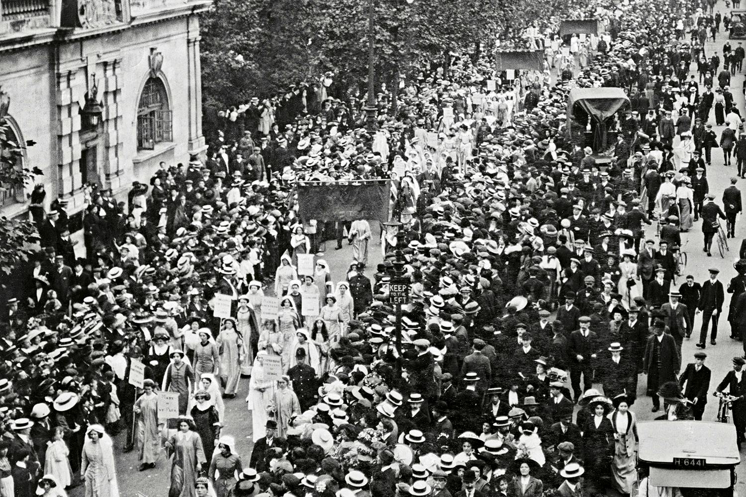 Skribenten Israel Zangwill, som besökt en suffragettsammankomst, jämförde det hela med ett frälsningsmöte. I täten gick Emmeline och Christabel Pankhurst, som med karisma och talarkonst lockade sina följeslagare att kämpa allt hårdare, offra allt mer.