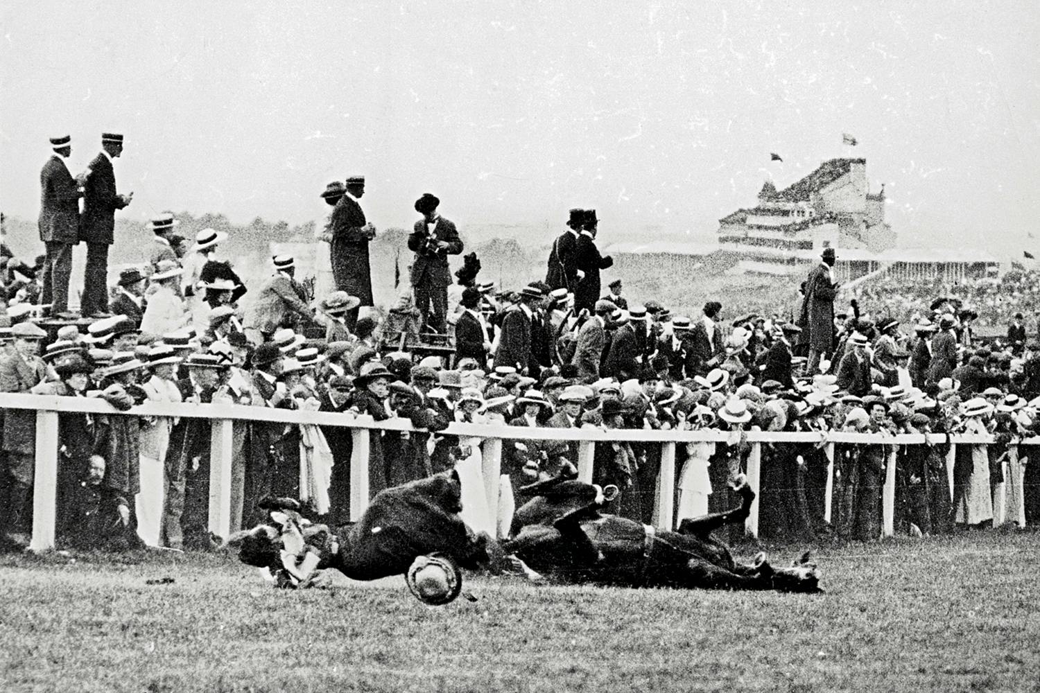 Men det mest uppmärksammade dådet ägde rum i juni 1913, då Emily Davison tog sig in på kapplöpningsbanan under the Epsom Derby, och försökte knyta en suffragettflagga på hästen som tävlade för kung Georg V. Hon slogs till marken av den galopperande hästen, och dog av sina skador.
