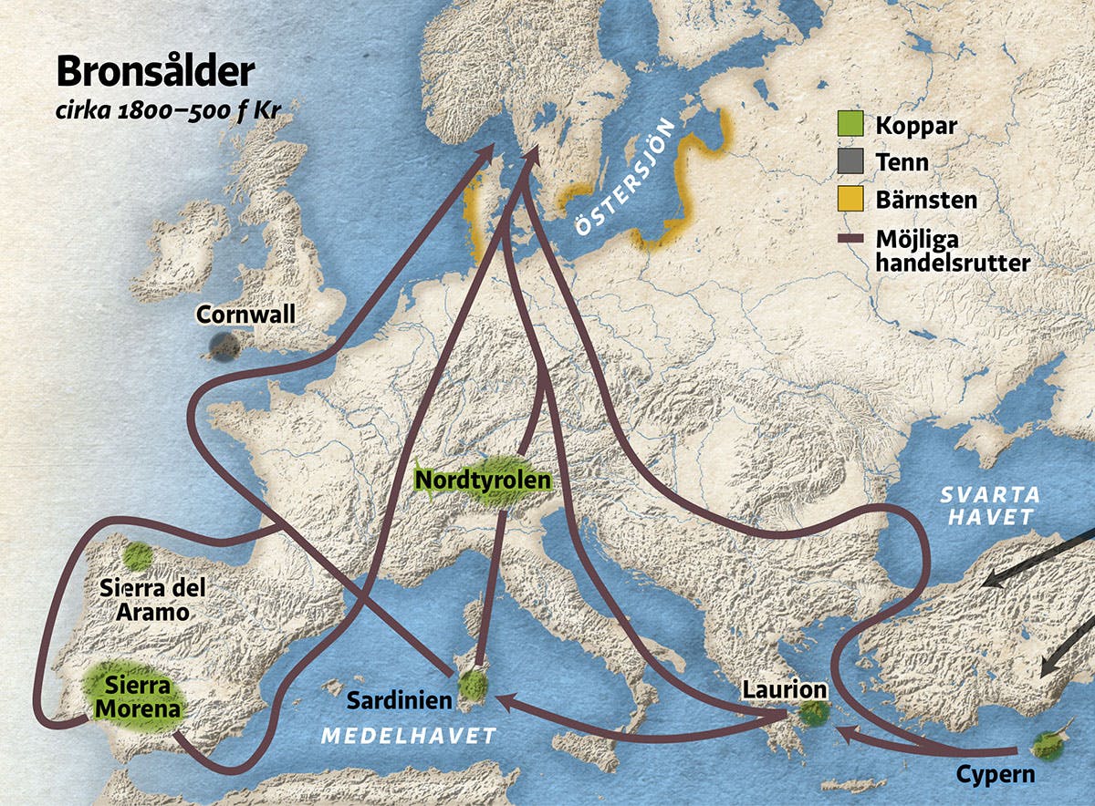Karta över bronsålderns handelsrutter