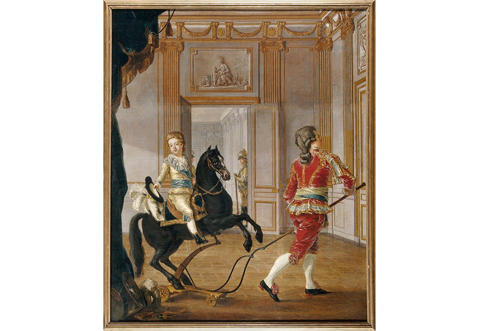 Julen 1783 gick hans heta dröm i uppfyllelse. Kungen såg till att sonen fick sin leksak, en gunghäst nästan lika stor som en riktig ponny. Situationen blev till en målning och är ett av de märkligaste barnporträtt vi har. En pojke med självförtroende på väg in i sin första ungdom, lycklig i sin lek och med välmenande människor omkring sig. Han är både konungslig och barnslig, herre i det stora rummet och på slottet.