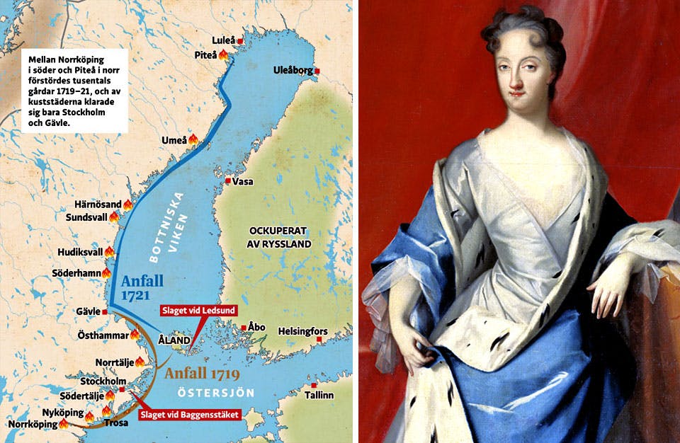 Mellan Norrköping i söder och Piteå i norr förstördes tusentals gårdar. Av kuststäderna klarade sig bara Stockholm och Gävle undan lågorna. Tsar Peters terrorkrigföring och det svenska styrets halsstarriga vägran att sluta fred kostade tiotusentals människor på den svenska ostkusten mer eller mindre allt de ägde, eftersom resurserna bara räckte till för att skydda huvudstaden.