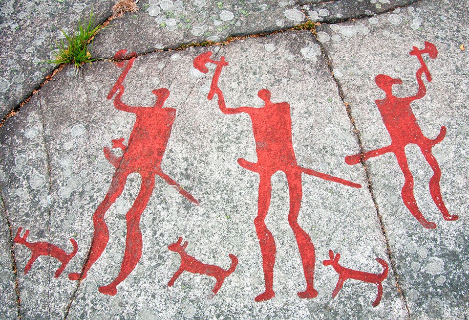 f Kr vid Hornborgarsjön i Västergötland. Här upptäcktes tre hundgravar där djuren – precis som människorna vid samma tid – hade beströtts med pulveriserad rödockra, som av vissa betraktas som en symbol för blod och liv. Men det kan lika gärna ha handlat om en tro på djurets magiska förmåga att visa människan vägen till dödsriket, som ett tecken på tillgivenhet.