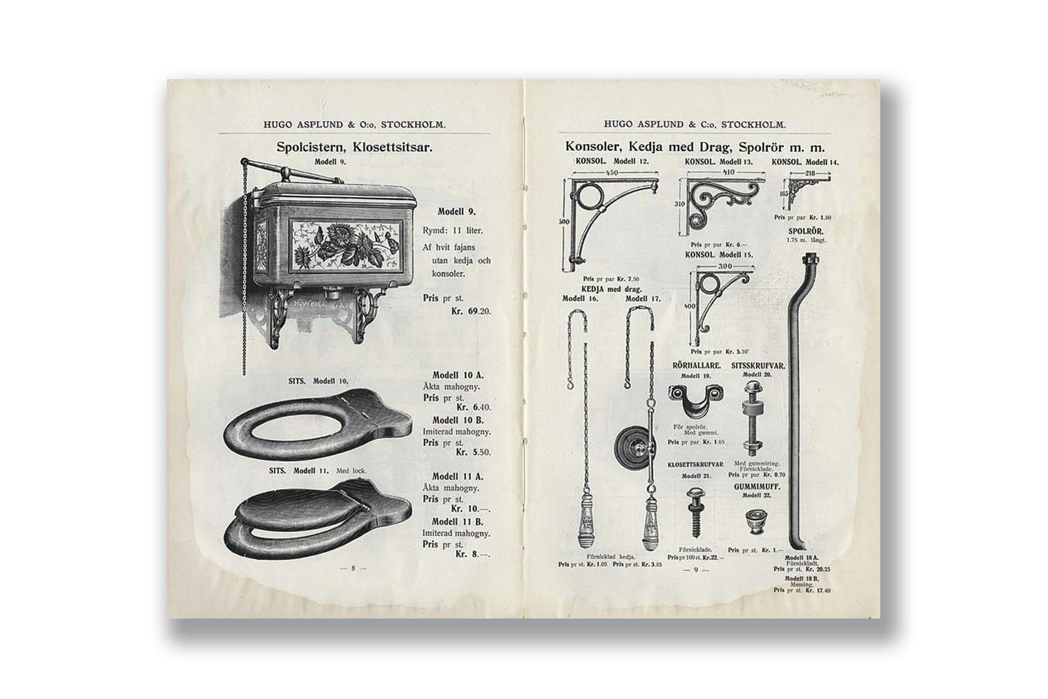 Det sena 1800-talets badrum var dock i vår mening ännu inte kompletta: de saknade wc. Omkring 1870 började Stockholms stad (strax efter Göteborg) att installera avloppsledningar, men Sverige hamnade ändå på efterkälken vad gäller vattenklosetter.