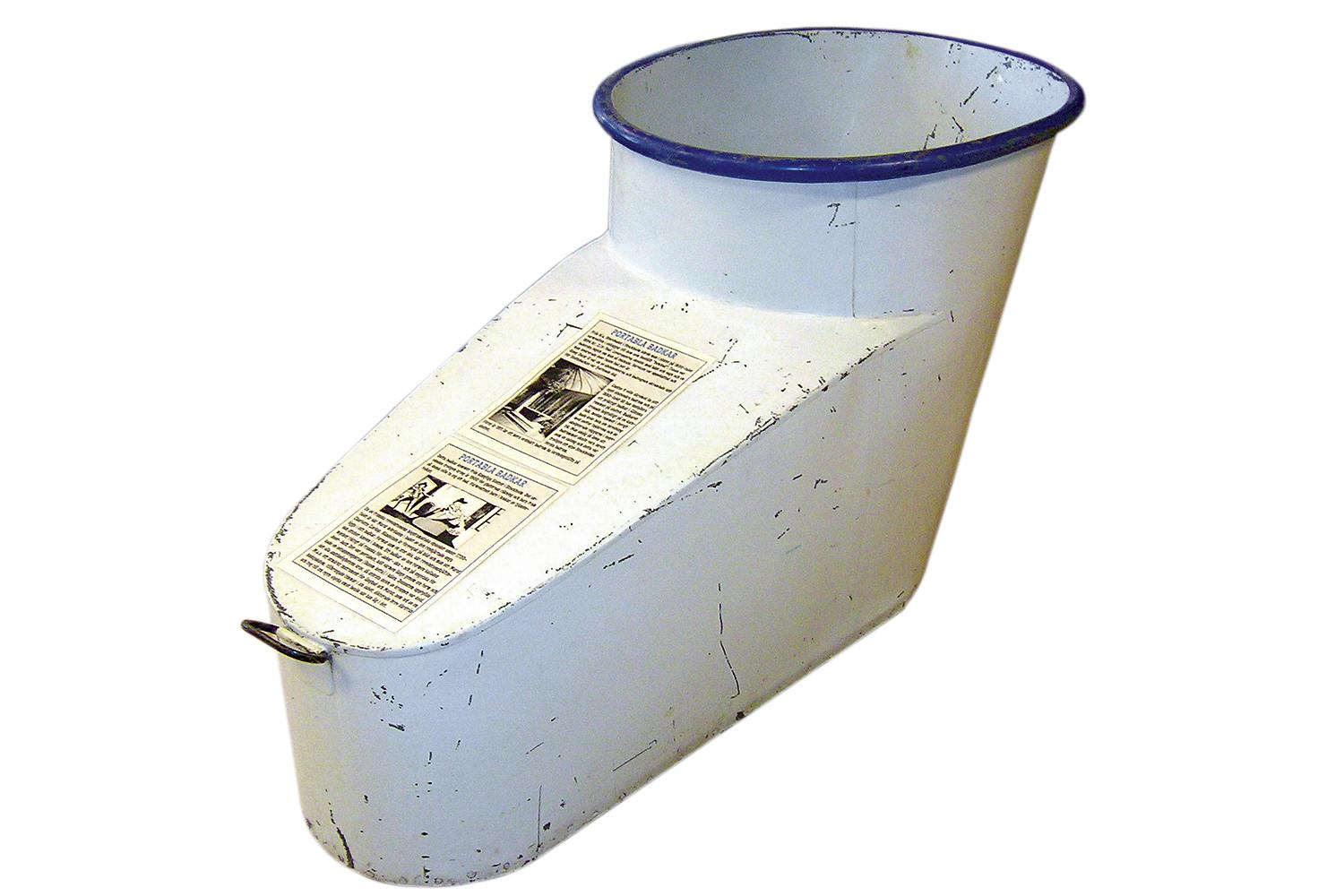Han berättar att han stött på den mest glänsande uppfinning där man ”träckade” i en soppskål. Skålen, menade Strindberg, var så fin att man efter uträttat ärende kunde ha ätit äkta sköldpaddssoppa ur den. För honom var uppfinningen sammantaget ett ”fullständigt trolleri”.
