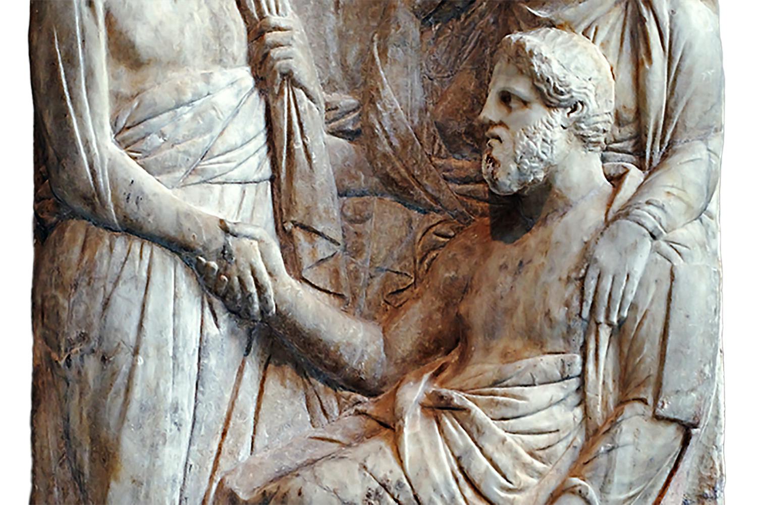 Vi står på fastare källmässig grund om vi flyttar blicken till de civilisationer som blomstrade vid Medelhavets kuster under forntiden och antiken. På grekiska begravningsmonument från 400-talet och 300-talet f Kr har bildhuggare skildrat människor – två soldater, en man och hans hustru, etcetera – som skakar hand.